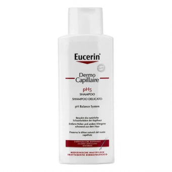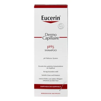 Gesunde Haut hat einen pH Wert von 4,5 bis 5,5, so dass die Haut leicht sauer ist. Diese natürliche Säure schützt Ihre Haut vor schädlichen Bakterien und anderen Substanzen. Wenn das natürliche Gleichgewicht gestört ist – z.B. durch Hitze, Kälte, Krankheiten, Kosmetika oder Stress – reagiert die Kopfhaut empfindlich. Eucerin DermoCapillaire pH5 Shampoo wurde speziell entwickelt, um den natürlichen pH-Wert Ihrer Haut zu bewahren. Es reinigt besonders mild und schützt vor Trockenheit und Irritationen. Es entfernt Schmutz, Pollen und andere Allergene und verleiht dem Haar gesunden Glanz und ein geschmeidiges Gefühl.