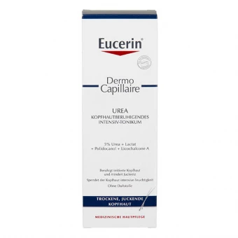 Eucerin DermoCapillaire Urea Kopfhautberuhigendes Intensiv-Tonikum wurde speziell für trockene und juckende Kopfhaut entwickelt. Diese Leave-In-Pflege klebt nicht und spendet der Kopfhaut lang anhaltende intensive Feuchtigkeit, beruhigt Irritationen und mindert Juckreiz – schon ab der ersten Anwendung. Mindert Mikro-Entzündungen, die Trockenheit und Juckreiz verursachen und verbessert dadurch den Zustand der Kopfhaut spürbar. Stellt das natürliche Gleichgewicht der Kopfhaut wieder her.