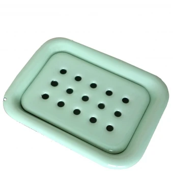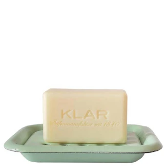 Klar‘s Seifenschale aus Email hat einen zarten Mintton und wirkt somit klassisch und modern zugleich. Das widerstandsfähige und langlebige Email ist in Deutschland gefertigt. Dank des integrierten Abtropfgitters weicht die Seife nicht auf.